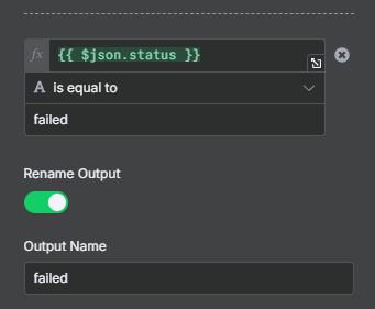 For failed renders, add a routing rule where ‘status' is equal to ‘failed' and rename the output to failed: