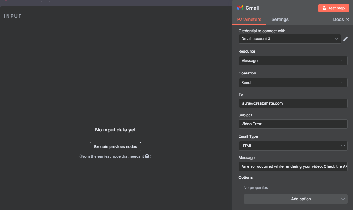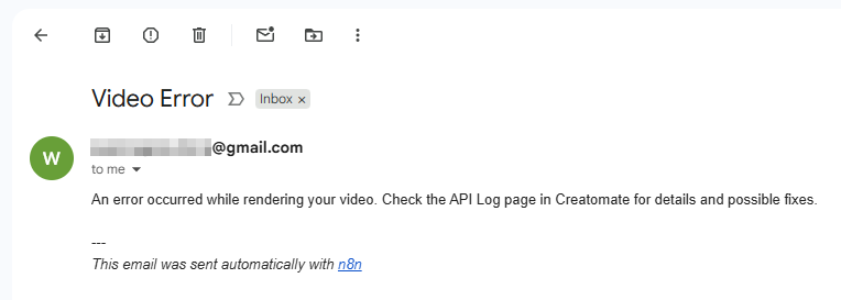 Next, let's deal with failures. When a video fails to render, you'll want to know about it right away. We'll do this by sending ourselves a notification. I'll use Gmail in this example, but you can use any app you prefer.