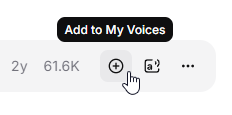 Here, you can browse the available voices and choose one for your AI voiceover. To add a voice to your account, click the + button: