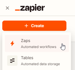 From your dashboard, click Create, then choose Zaps: