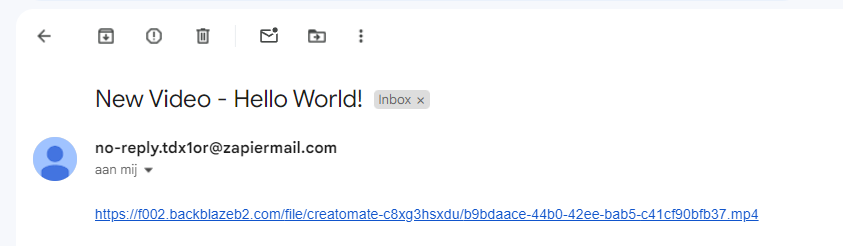 At this point, Creatomate should have successfully generated a video that you can use however you like. As an example, I'll show you how to send it via email, but feel free to use any app that suits your needs. A common use case is creating video content for social media. If that interests you, here's how to post videos on Instagram, Facebook, TikTok, or as YouTube Shorts.