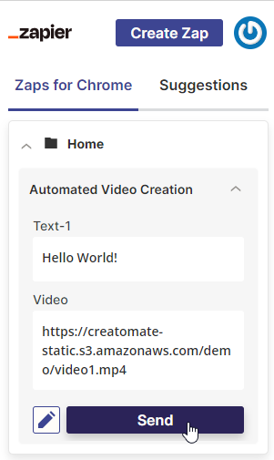 Open the Chrome extension from your list of extensions and navigate to your Zap. Let's add the following data:
