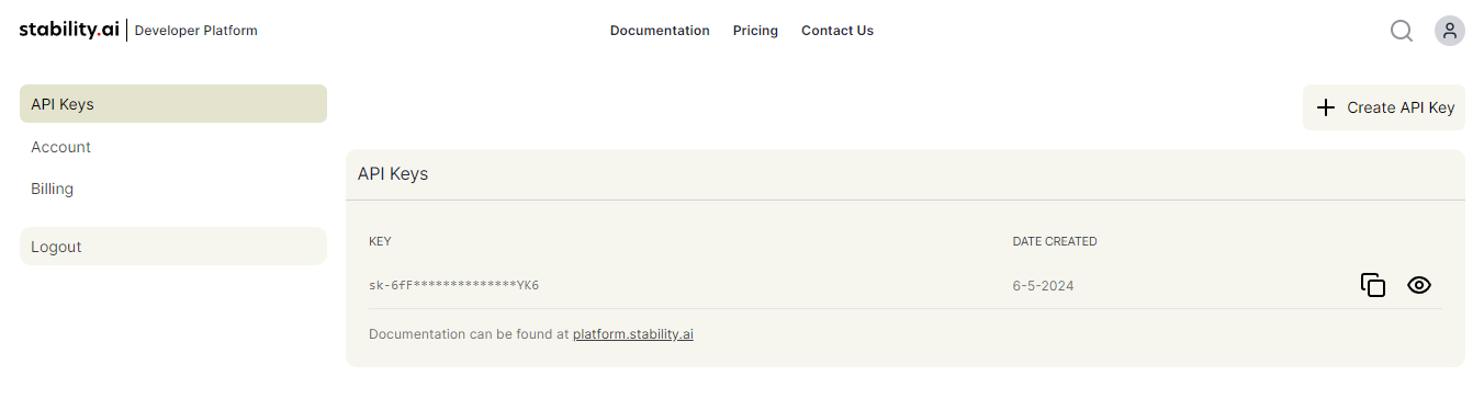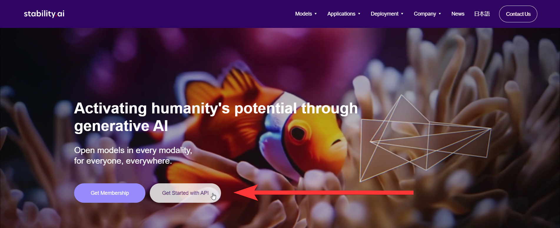 Go to Stability.ai, and click the Get Started with API button: