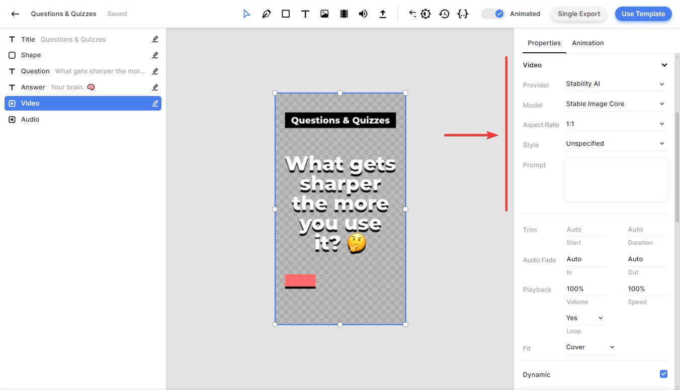 💡 AI tip: Instead of coming up with your own "Question" and "Answer," you can use ChatGPT. To find out more about ChatGPT's ability to generate video content, check out this tutorial.