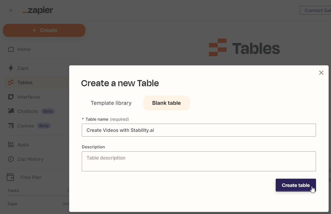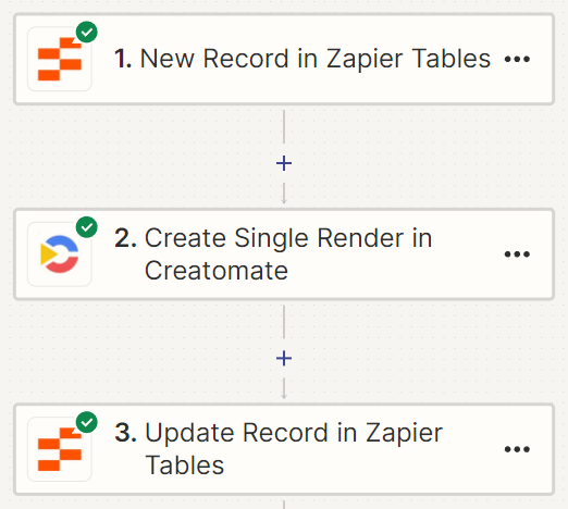 For this tutorial, I'll assume you're already familiar with Zapier. If not, no worries – it's very easy to learn. Our basic Zapier workflow will take input data from a Zapier Table, pass it through Creatomate (which in turn uses Stability AI), and insert the AI-generated video back into the table. The process is as simple as that: