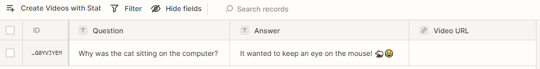 In this tutorial, we just put the generated video back in the Zapier Table.