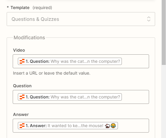 Now, let's map the text to the template. We'll use the question as the text-to-video prompt: