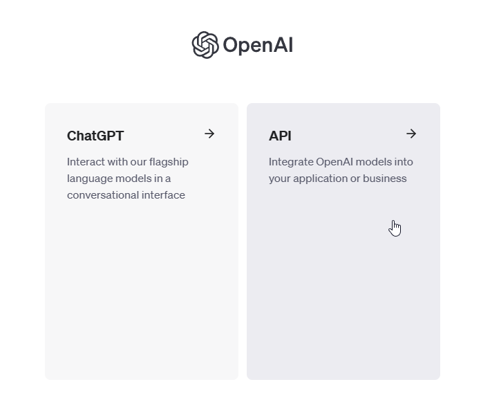 Create a free OpenAI account or sign in if you already have one. Then, go to the API section: